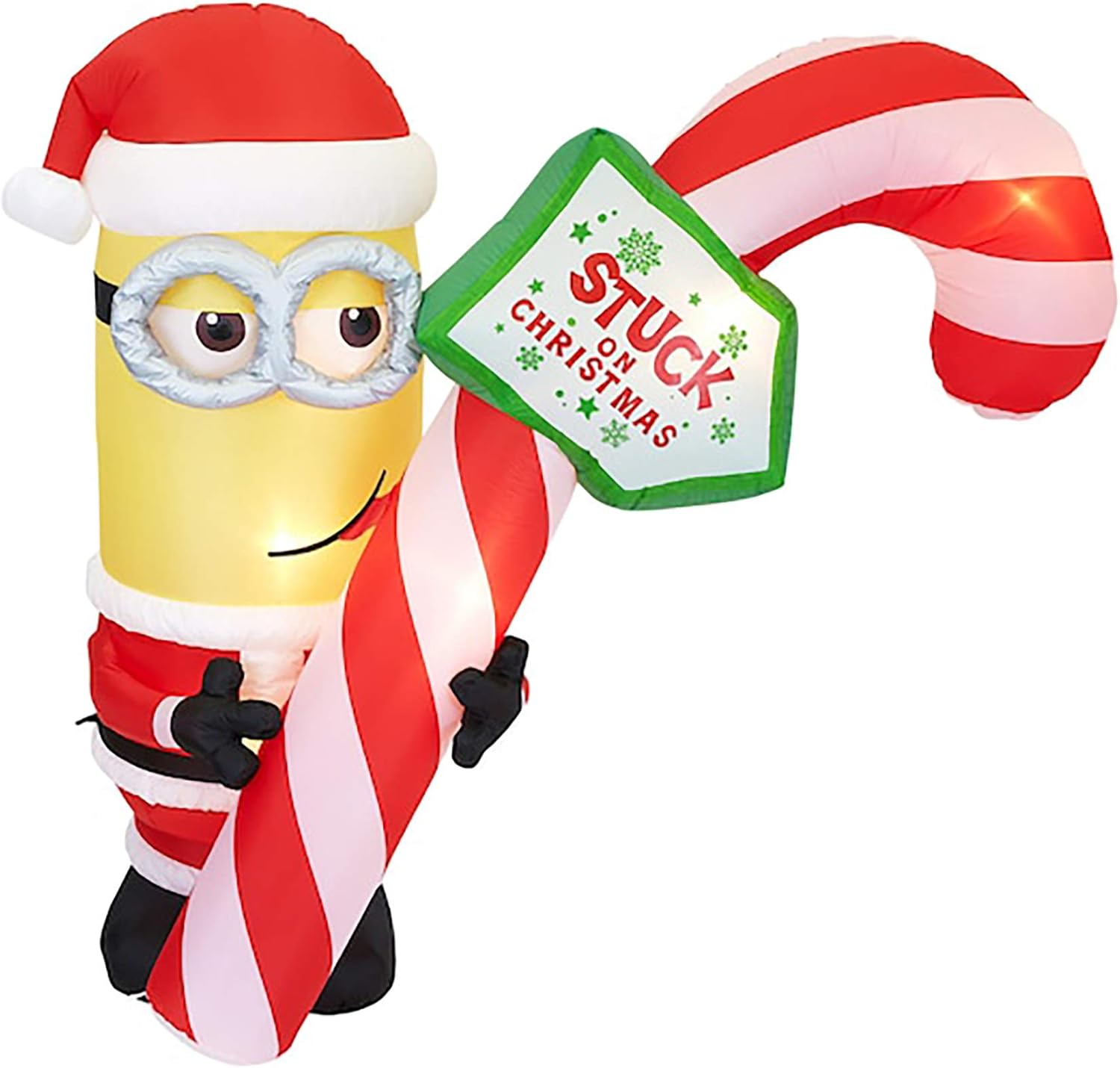 Amazon Com Gemmy 7ft Tall Christmas Inflatable Minion Kevin Holding Candycane Indoor Outdoor Holiday Decoration Patio Lawn Garden
